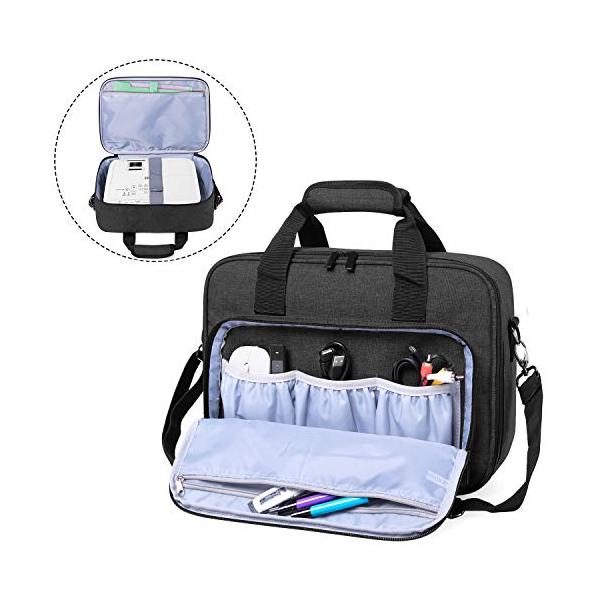 - Luxja プロジェクターバッグ エプソン等メーカー対応 大開口 まとめて収納 持ち運びやすい 黒【収納力】1つのメイン室と5つのポケットがあって、プロジェクターに限らず、HDMIケーブル、AVケーブル、リモートコントロールなどを収納することができます。【便利】大きく開くタイプで、プロジェクターの取り出しはとても便利です。【寸法】34.9cm x 26.7cm x 11.4cm、プロジェクター入れ:34.3cm x 25.4cm x 10.8cm、エプソンEB-S05/ EB-W05/ EB-W06/ EB-X05/ EB-X06/ EB-E10/ EB-W41/ EB-X41/ EB-X51/ EB-W51/ EH-TW650に対応可能。ほかの機種は購入前にプロジェクターの寸法をお確かめ下さい。【保護】厚めのクッション材と固定用ゴムバンドは大切なプロジェクターを保護します。【持ち運びやすい】クッション材付きの持ち手と取り外し可能なショルダーストラップが付いています。軽量、コンパクトで、プレゼントにもお勧めます。複数店舗にて販売をしておりますため、在庫データの更新が間に合わず、欠品にも関わらず、注文ができる場合がございます。その際は、キャンセルにて対応を取らせていただきます。当店はお電話のお問い合わせはお受けしておりませんので、ご了承ください。お問い合わせは、問い合わせフォームをご利用ください。