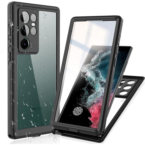 SamsungギャラクシーS22 Ultra スクリーンプロテクター付き防水ケース MDM (S22UBlack, S22U6.8inches)