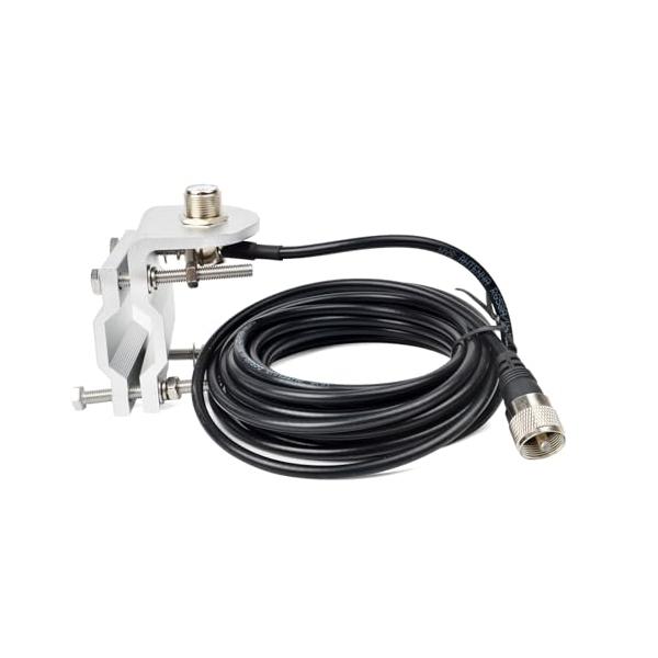 TWAYRDIO アルミ製 アンテナ取付金具 アンテナ基台 ステーブラケット MP-MJ型RG58同軸ケーブル付 アマチュア無線アンテナ固定用 ベランダ手すり用 ミラーパイプ