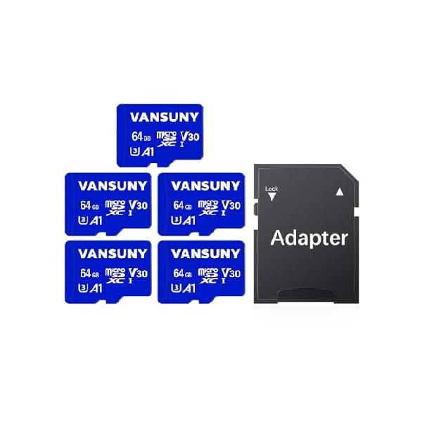 Vansuny マイクロSDカード 64GB 5枚パック microSDXCメモリーカード SDアダプター付き A1 アプリパフォーマンス V30 4K ビデオ録画 C10 U3 Micro SD 電_並行輸入