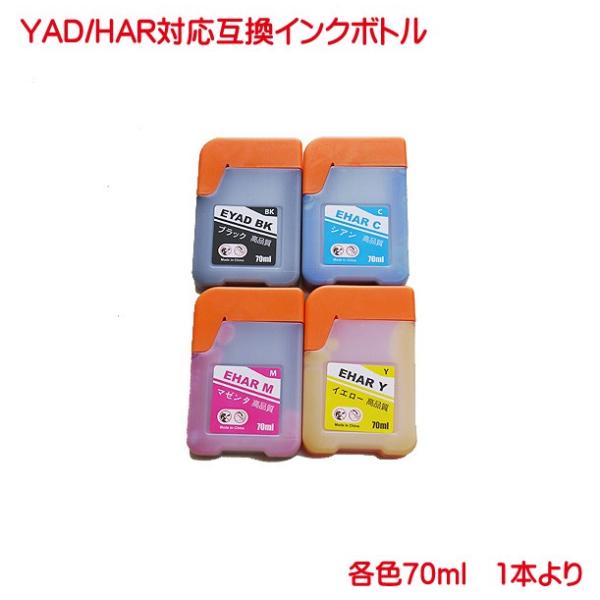 純正品型番YAD-BK(ブラック)、YAD-BK(シアン)、YAD-BK(マゼンタ)、YAD-BK(イエロー)、の互換性のあるインクボトルです。単品販売です。(エプソン社製ではありません)(黒のみ純正品と同様で顔料タイプです。各色70mlです。)