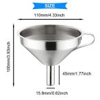・?特徴1. 大口径の円錐形漏斗設計により、フィルタリングが高速になり、時間を節約できます。 2.ハンドルは漏斗を移すときに手を保護するように設計されています。 じょうごは、瓶やボトルに簡単に取り付けたり、フックに掛けて簡単に保管したりできます。