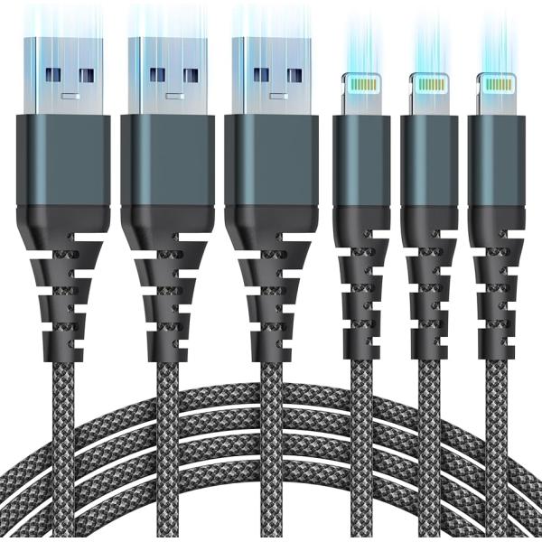 i-Phone 充電ケーブル MFi認証 3本セット ライトニングケーブル 急速充電対応 高耐久ナイロン編組 データ転送(グレー)