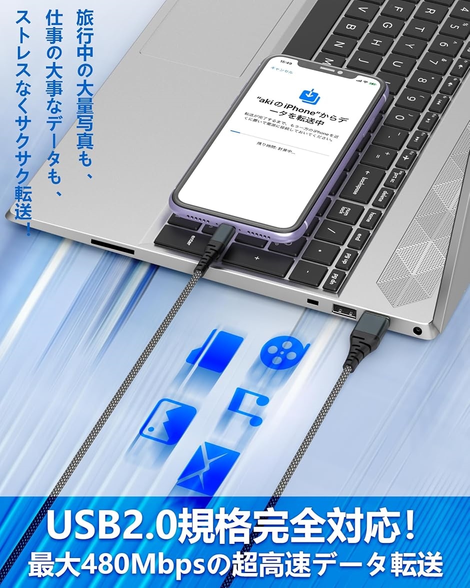 「480Mbps高速通信&安定性強化」 USB2.0ポート対応で理論最大速度480Mbpsを実現。
