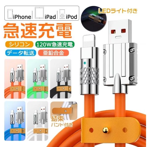 iPhone 亜鉛合金 スマホ充電ケーブル 断線防止 柔らかい 充電器 USB シリコン ケーブル iPhone ipad 対応 急速充電 Lightning android Type-c