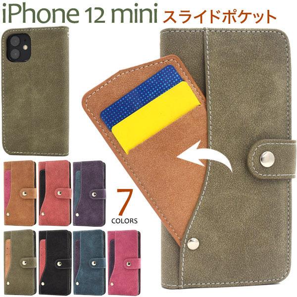iPhone 12 mini用スライドカードポケット手帳型ケース