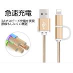 iPhoneケーブル micro USBケーブル 2in1 長さ2m 急速充電 充電器 データ転送用 iPhone用 Android用 充電ケーブル マイクロUSB 日本郵便送料無料 PK2-40