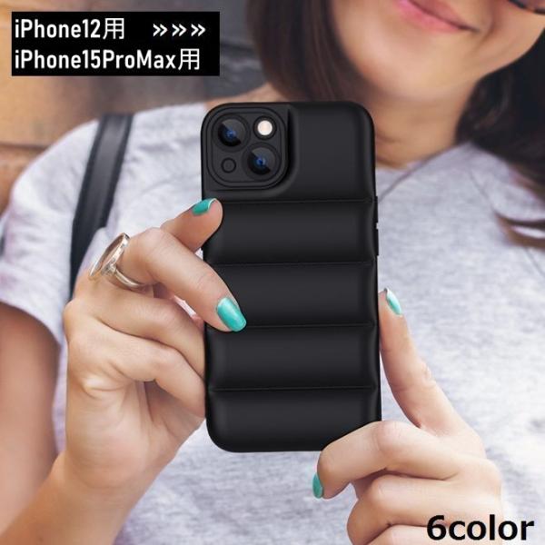 iPhone用ケース カバー スマホケース 軽量 ダウンジャケット風 マット 黒 シンプル 無地 ソフト 耐衝撃 カメラ保護 背面保護 アイフォン用