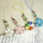 桜 さくら ストラップ ブルー 水色 根付 キャッツアイ ストラップ根付