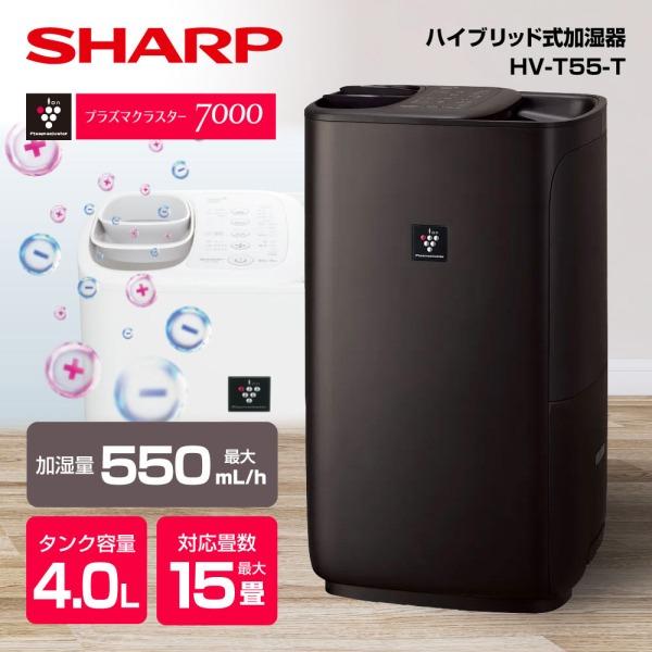 シャープ HV-T55-T 加湿器 チャコールブラウン レギュラータイプ ハイブリッド式加湿器 SHARP (木造9畳/プレハブ洋室15畳まで) どっちも給水 HVT55 hvt55