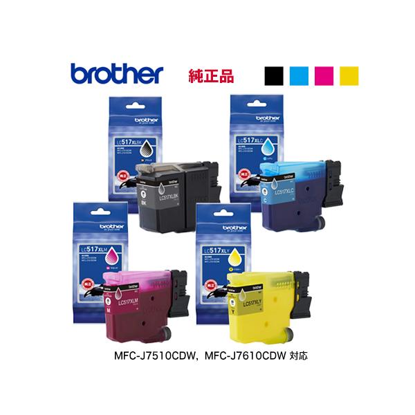 【純正品 4色セット】 brother/ブラザー工業 LC517XLBK、C、M、Y インクカートリッジ 大容量タイプ 顔料 新品