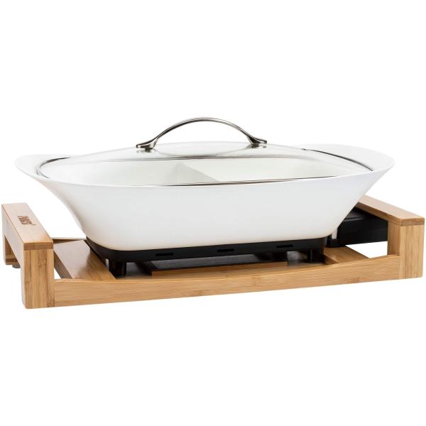 - プリンセス Separate Pot Pure/セパレートポットピュア 163030 ピュア 新品・未使用商品! ワガママ叶える才色兼備な2WayPot家族やゲストの好みに合わせて2種類の味、違う料理を同時に調理することができる仕切りがついたポット(鍋)です。ワガママ叶える才色兼備な2WayPot家族やゲストの好みに合わせて2種類の味、違う料理を同時に調理することができる仕切りがついたポット(鍋)です。お子様用には甘口カレーで大人はスパイシーな辛口カレー、しゃぶしゃぶとすき焼き、キムチ鍋と豆乳鍋など、組み合わせもお好みでレシピも広がります。簡単お手入れ、使いやすさも従来のPRINCESS製品ならではです。デザイン:料理や素材を引き立てる白と温かみのある竹素材という組み合わせは、PRINCESSの定番デザインです。モダンシックなブラックもラインアップとして仲間入り。ポットは、曲線が優美なvessel(船)型。口が広めで深すぎないので調理もしやすく、お料理映えもするデザインです。ポットと美しくマッチングするガラス製の蓋、グツグツ煮込む温かな食卓は日常をワンランクアップさせます。美味しさ:低温から高温まで幅のある温度設定機能やサーモスタット機能で調理に最適な温度を保ちながら調理ができます。蓋をして低温で保温しながら、煮詰まったり煮すぎることなく美味しさもキープします。2つの違う味を楽しんだり、それぞれで調理したものを合わせて食べたり、1台でできるお料理の幅が広がります。ポット(お鍋)・蓋のお手入れ:ご使用後のお手入れはお鍋や蓋を冷ましてからお湯や水で湿らせたキッチンペーパーや布で拭くだけでもきれいになりますが、汚れが気になる場合はシンクでお湯や中性洗剤で洗い流します。※シンクで丸洗いする場合はポットを冷まし、鍋のソケット部分を水に濡らさないように注意して洗ってください。パーツのお手入れ:竹の台座は濡れ布巾などで汚れを拭き取り、付属のパーツは中性洗剤などで汚れを洗い落とします。※ポット・台座以外は食洗機可。 5