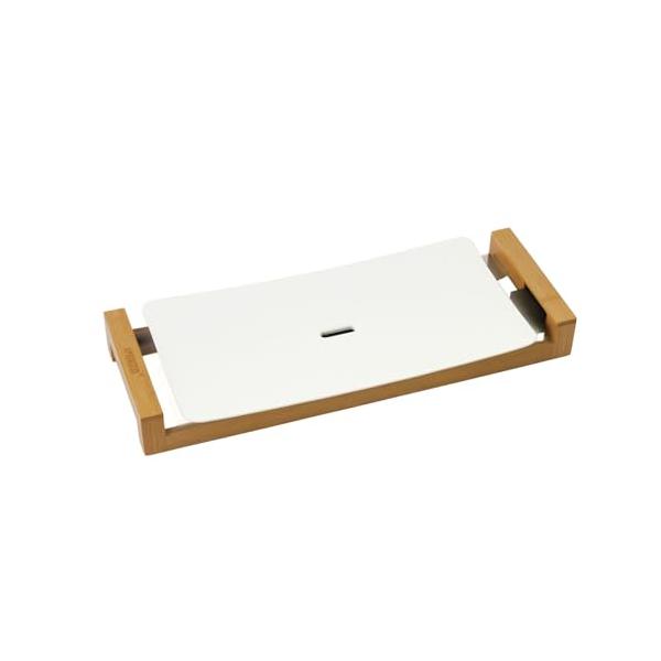 - 時短・ピュア テーブルグリル テーブルグリルピュア(103030)・・Size:テーブルグリルColor:ピュア・カラー:ピュアホワイト・本体サイズ(約):幅614×奥222×高70(台座含む)・コード長さ:2m・コード長さ:2m説明 オランダ発!クールデザインの魅せる家電♪【特長】・純白のプレートに天然竹の台座の組み合わせがスタイリッシュ! 魅せる家電と呼ばれるに相応しいグリルプレートです!・ただ焼くだけだったホットプレートがテーブルを彩るインテリアに。 いつもの食卓やホームパーテイーをお洒落に演出します。・外はこんがり、中はジューシーに!遠赤外線効果で食材の旨味を引き出せます。・高い熱伝導性で短時間でプレート全体が適温に至り素材を素早く焼き上げます。・プレート全体が中央に向かって緩やかに傾斜し中央の穴に油が落ちるよう設計されています。・ダイヤルを回すだけの簡単操作。・ご使用後のお手入れはお湯や水で湿らせたキッチンペーパーや布でサッと一拭きで 簡単に落とせます。・付属の木目がオシャレなスパチュラはプレートを傷つけずに食材を調理できます。・ドイツIFAデザインアワード受賞商品。