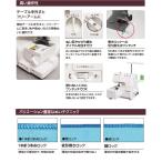 糸かけ糸調子カラーガイド、下ルーパーの糸かけもラクラク、差動送り、セーフティストップ機構付、手元LEDライト、フリーアーム、縫い目かがり幅ダイヤル、巻きロック切り替えレバー、使わないメスはワンタッチでOK