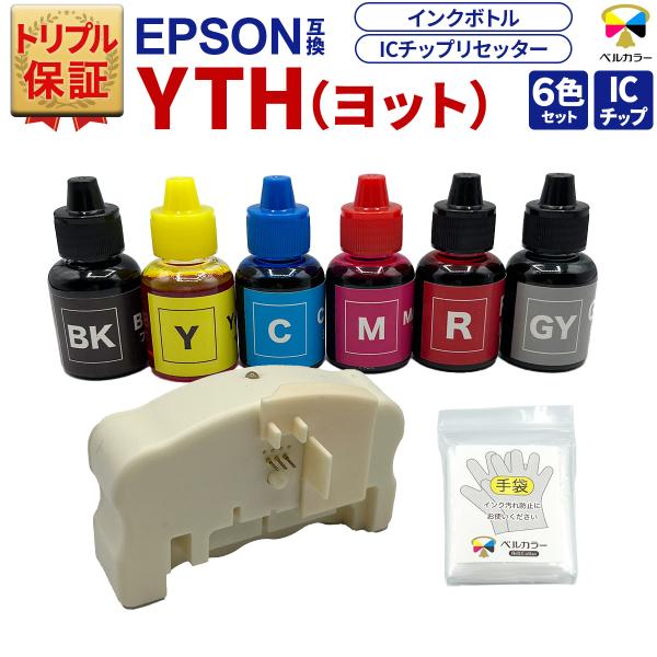 トリプル保証 エプソン 互換 YTH-6CL ヨット 専用 ICチップリセッター 詰め替え用インク 30ml 6色セット ベルカラー