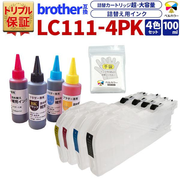 トリプル保証 ブラザー brother 互換 LC111 対応 大容量 カートリッジ L 詰め替え インク セット 純正比 約10倍 ベルカラー