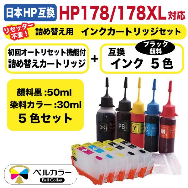 トリプル保証 HP互換 HP178・HP178XL 対応 互換インク5色 詰め替えカートリッジ ベルカラー