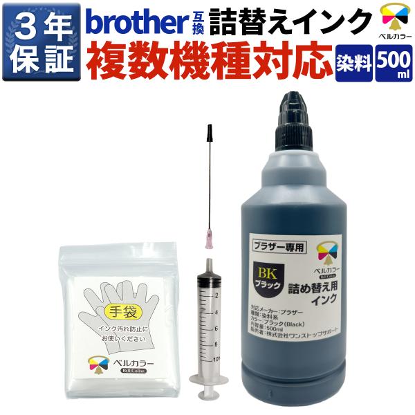 3年保証 ブラザー brother互換 詰め替え 互換インク プリビオ全機種対応 ブラック 顔料 500ml ベルカラー製