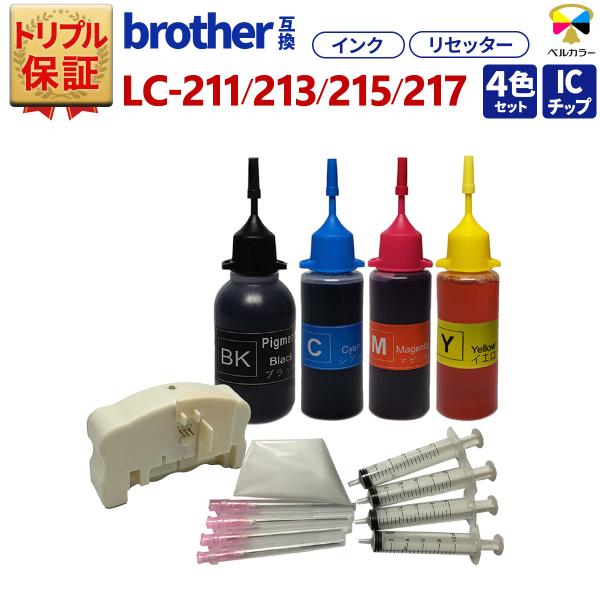 トリプル保証 ブラザー brother 互換 LC211 LC213 LC215 詰め替え 互換インク 4色 ICチップリセッター ベルカラー