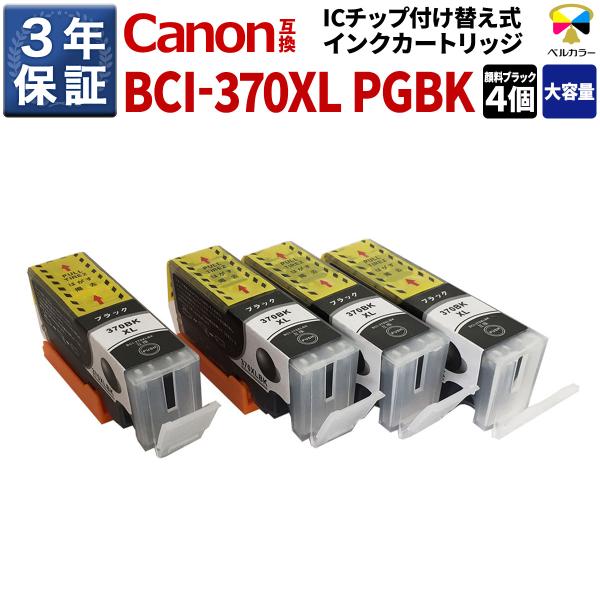 3年保証 キヤノン CANON互換 BCI-370PGBK BCI-370XLPGBK 顔料ブラック ICチップ付け替え式 互換 インクカートリッジ 4個セット ベルカラー製