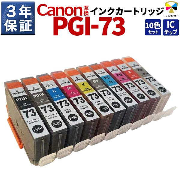 3年保証 キヤノン CANON互換 PIXUS PRO-10 PRO-10S PGI-73 互換インクカートリッジ 10色 ベルカラー製
