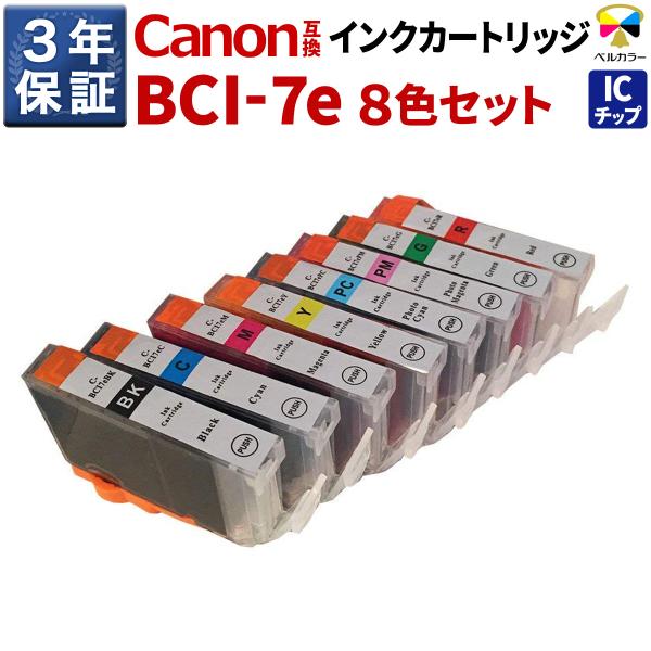 3年保証 キヤノン CANON互換 BCI-7e 互換インクカートリッジ 8色セット BK C M Y PC PM G R ベルカラー製