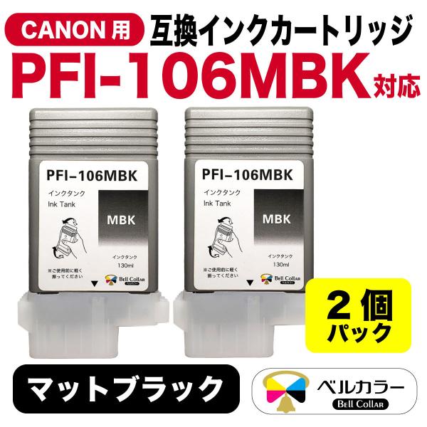 3年保証 PFI-106 MBK 130ml 互換 インクタンク インクカートリッジ キヤノン CANON 用 iPF6300 iPF6400SE 他 対応 マットブラック 2個パック ベルカラー