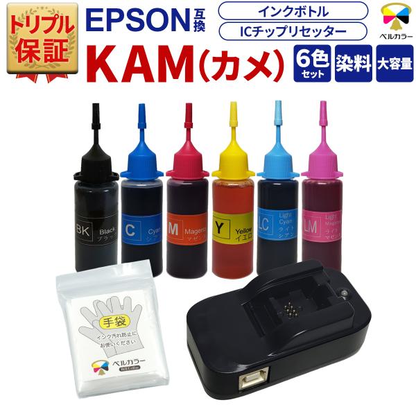 トリプル保証 エプソン 互換 ICチップリセッター 詰め替え用 互換インク 6色 KAM カメ EP-881 EP-882 EP-883 対応 USB駆動式 ベルカラー