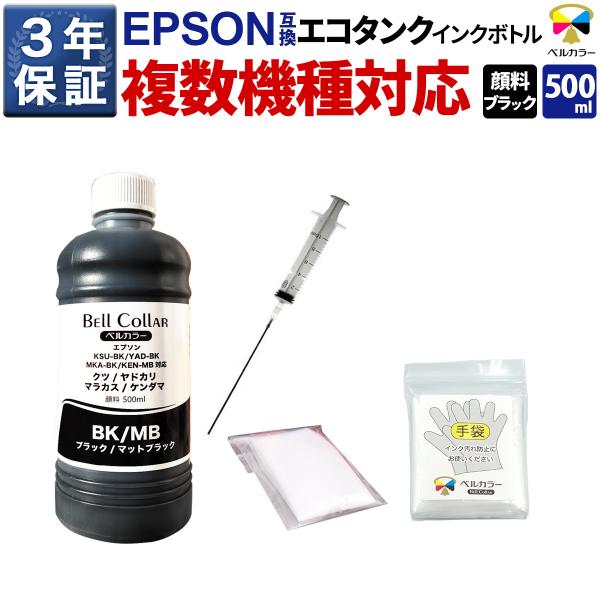 ベルカラー エプソン 互換 インクボトル エコタンク クツ KSU-BK-L ヤドカリ YAD-BK マラカス MKA-BK ケンダマ KEN-MB 顔料 ブラック 純正比 10倍 大容量 500m