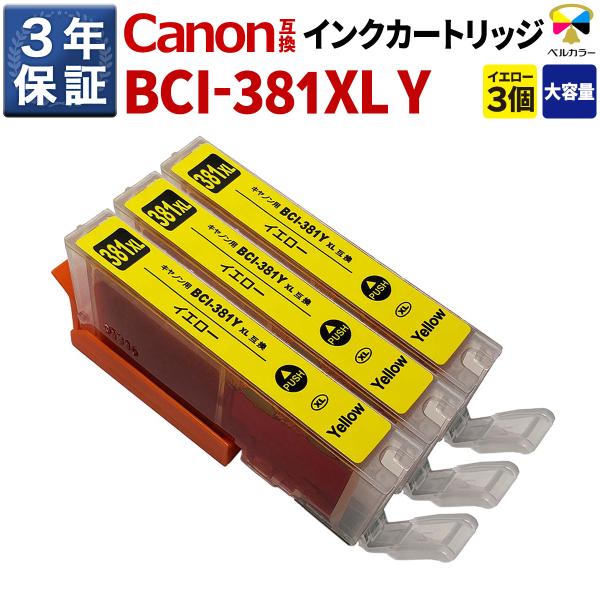 ベルカラー キヤノン 互換インク カートリッジ BCI-381Y TR9530 PIXUS TS6330 純正と併用可 イエロー 3個セット