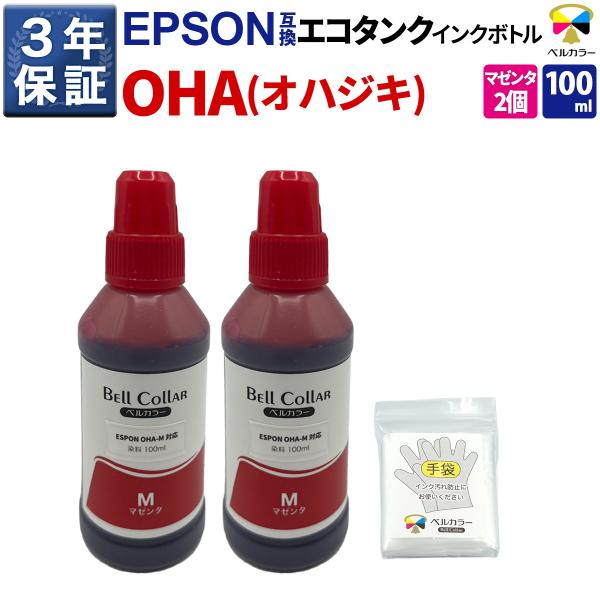 エプソン OHA ( オハジキ )対応 エコタンク 互換インクボトル マゼンタ 2本セット。純正同様に目詰まりしにくい高品質インクを採用。 純正品に対して2本セットで約3倍の容量で非常にお得です。