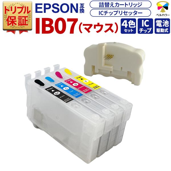 トリプル保証 マウス IB07 詰め替えカートリッジ リセッター エプソン 用 PX-M6010F PX-M6011F 他 対応 4色 電池駆動式 ベルカラー