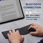 ●タイプ音の静かなパンタグラフキー採用折りたたみ式キーボード:軽量、スリム、折りたたみ式で収納便利;ひざ上でのタイピング中に折曲がりを防止するストッパー付き