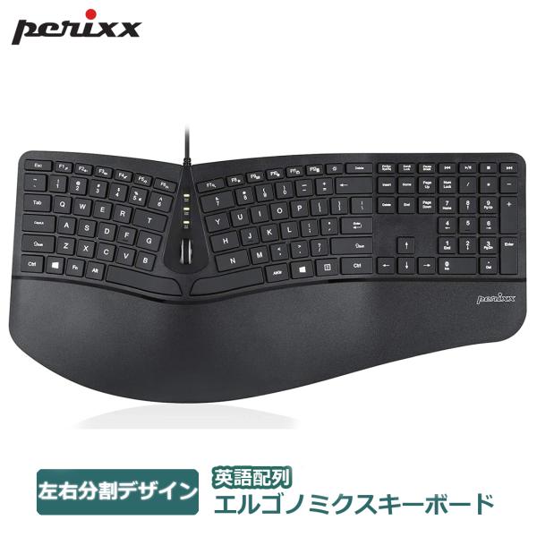 ペリックス 正規保証品 有線 バックライト エルゴノミクスキーボード 角度調節スタンド USBハブ2個 テンキー 英語配列 US配列 PERIBOARD-330US
