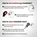 ご使用前にはボールをメガネ拭きなどの柔らかい布で拭いてホコリを取り除き、キーボード/マウス本体を掃除してから挿入してください。※ご注意:ボール表面に液体や油分などの汚れがついたり本体の内側にホコリがたまったりするとボールの動きが悪くなります。その場合はボールを取り外して本体内側を掃除し、ボールについた汚れを中性洗剤をつけたスポンジまたは軽く水に濡らした布で拭き取ってください。
