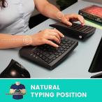 ・エルゴノミクスに基づいたキーボードは、カーブしたキーとスプリットキーの傾斜により、タイピング中の自然な腕と手のポジションを促進します。長時間のタイピングによる肩、手首、前腕の不快感を最小限に抑えます