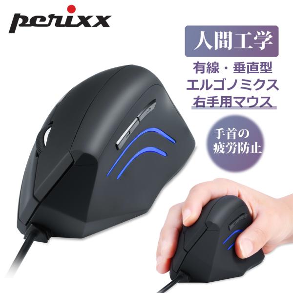 ペリックス エルゴノミクスマウス 有線 垂直型 -カスタマイズ可能ボタン5個 右手用 おすすめ 正規保証品 長時間の使用でも疲れにくい PERIMICE-508