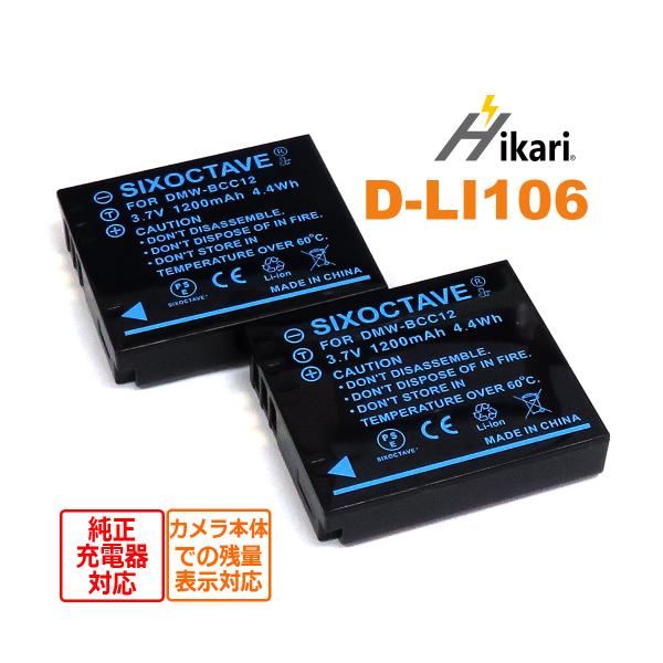 D-LI106 PENTAX 互換バッテリー 2個 カメラ本体に残量表示可能 純正充電器対応 PENTAX MX-1 PENTAX X90 対応