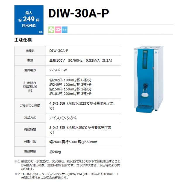【直送品】 ホシザキ コールドウォーターディスペンサー DIW-30A-P 【大型】
