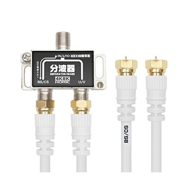 ホーリック アンテナ分波器 4K8K放送(3224MHz)/BS/CS/地デジ/CATV 対応 ケーブル2本付属 40cm BCUV-971