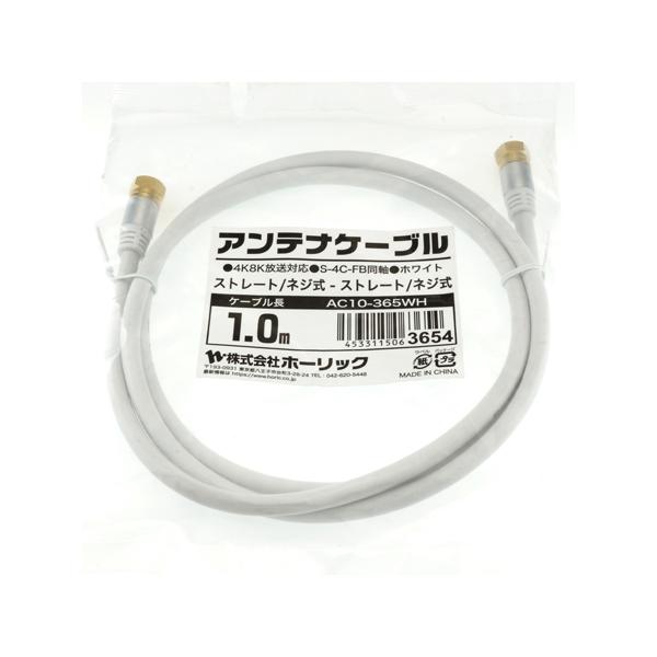 アンテナケーブル 1m ホワイト アルミヘッド 両側ネジ式コネクタ ホーリック AC10-365WH (65-1792-40)