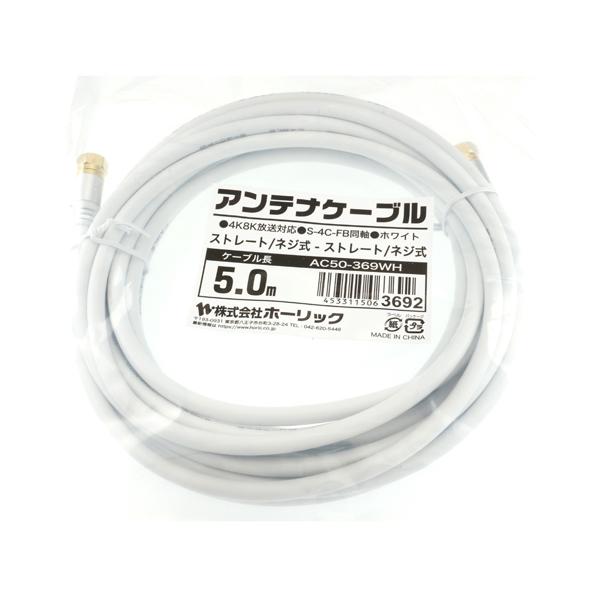 アンテナケーブル 5m ホワイト アルミヘッド 両側ネジ式コネクタ ホーリック AC50-369WH (65-1792-44)