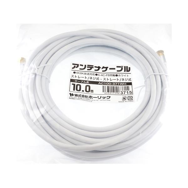 アンテナケーブル 10m ホワイト アルミヘッド 両側ネジ式コネクタ ホーリック AC100-371WH (65-1792-46)