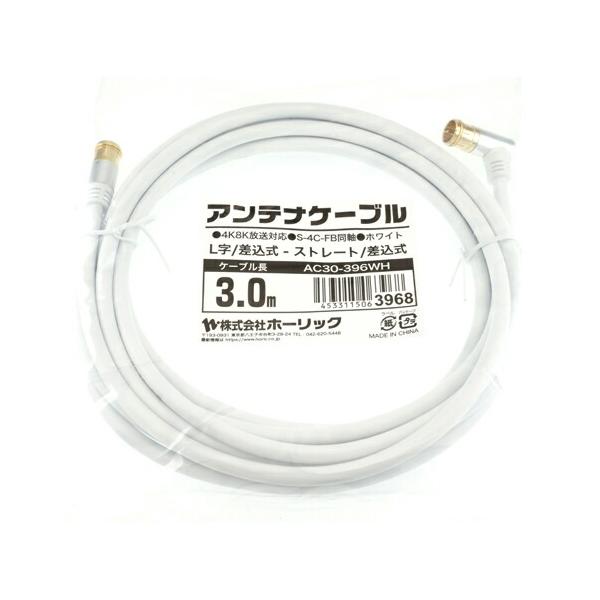 ホーリック アンテナケーブル 3m ホワイト アルミヘッド L字差込式/差込式コネクタ 1本 AC30-396WH