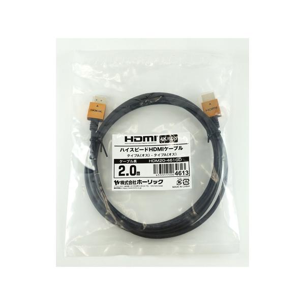 HDMIケーブル 2m ゴールド ホーリック HDM20-461GD (65-1792-90)