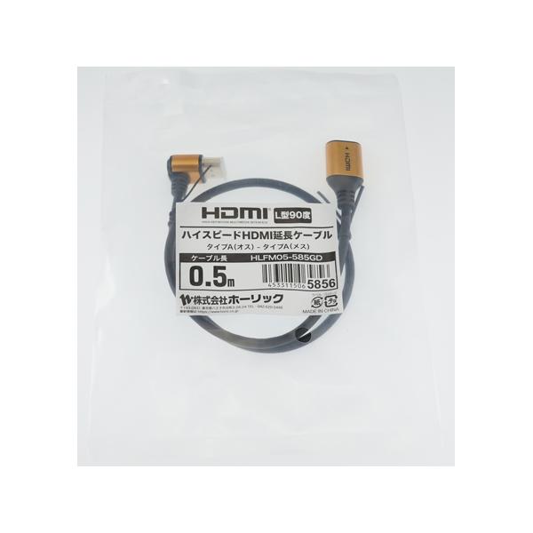 HDMI延長ケーブル L型90度 0.5m ゴールド ホーリック HLFM05-585GD (65-1793-82)