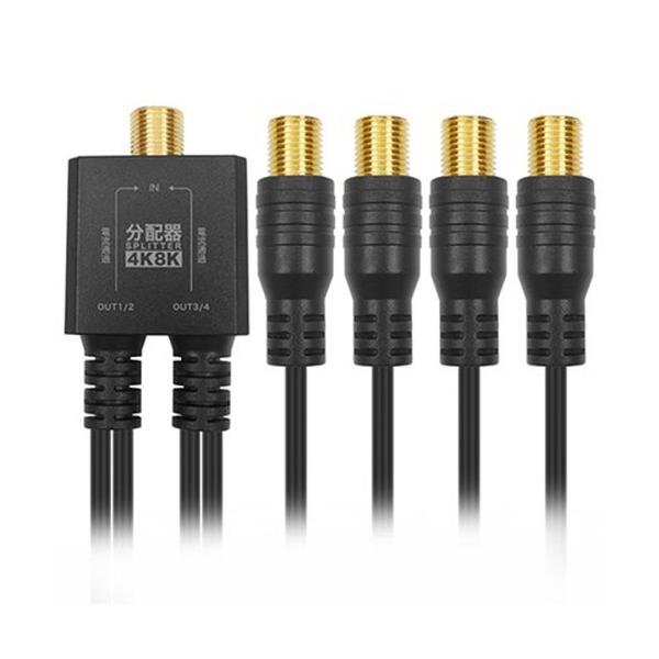 ホーリック アンテナ4分配器 極細ケーブル一体型 10cm ブラック F型接栓メス AP-718BB 映像関連 代引不可
