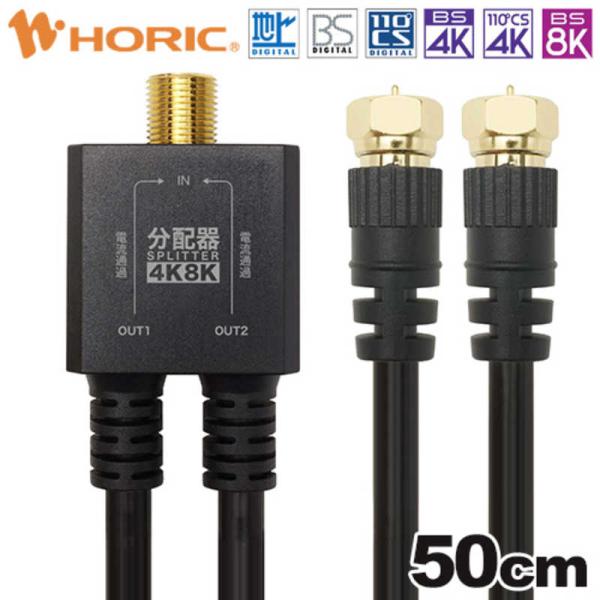 ホーリック アンテナ分配器 ケーブル一体型 50cm ブラック ネジ式コネクタ AP-720BB