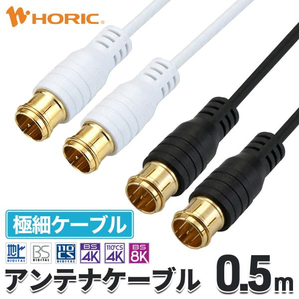 極細 アンテナケーブル 0.5m 差込式-差込式 4K 8K 地デジ BS CS 対応 S-2.5C-FB 白/黒 テレビケーブル テレビ線 同軸ケーブル 細め 50cm AC05-064WW AC05-065BB