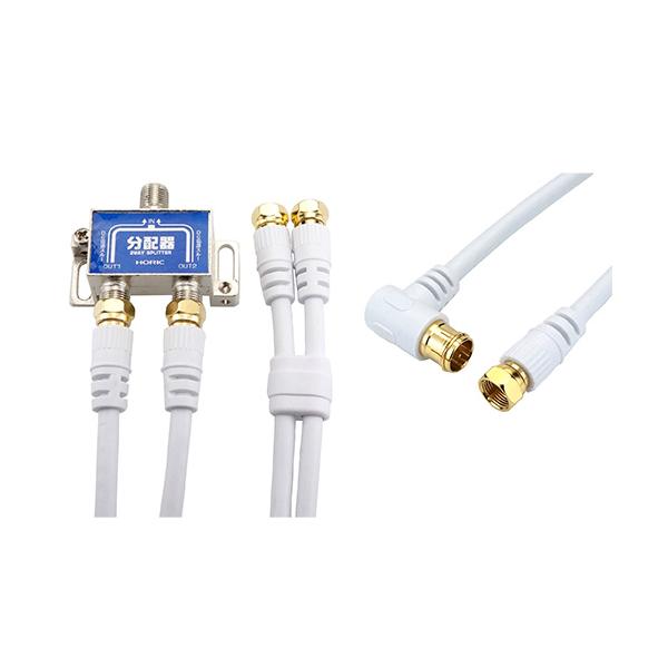 アンテナ分配器 ケーブル2本付属 1m + アンテナケーブルF型差込式/ネジ式コ 取り寄せ商品